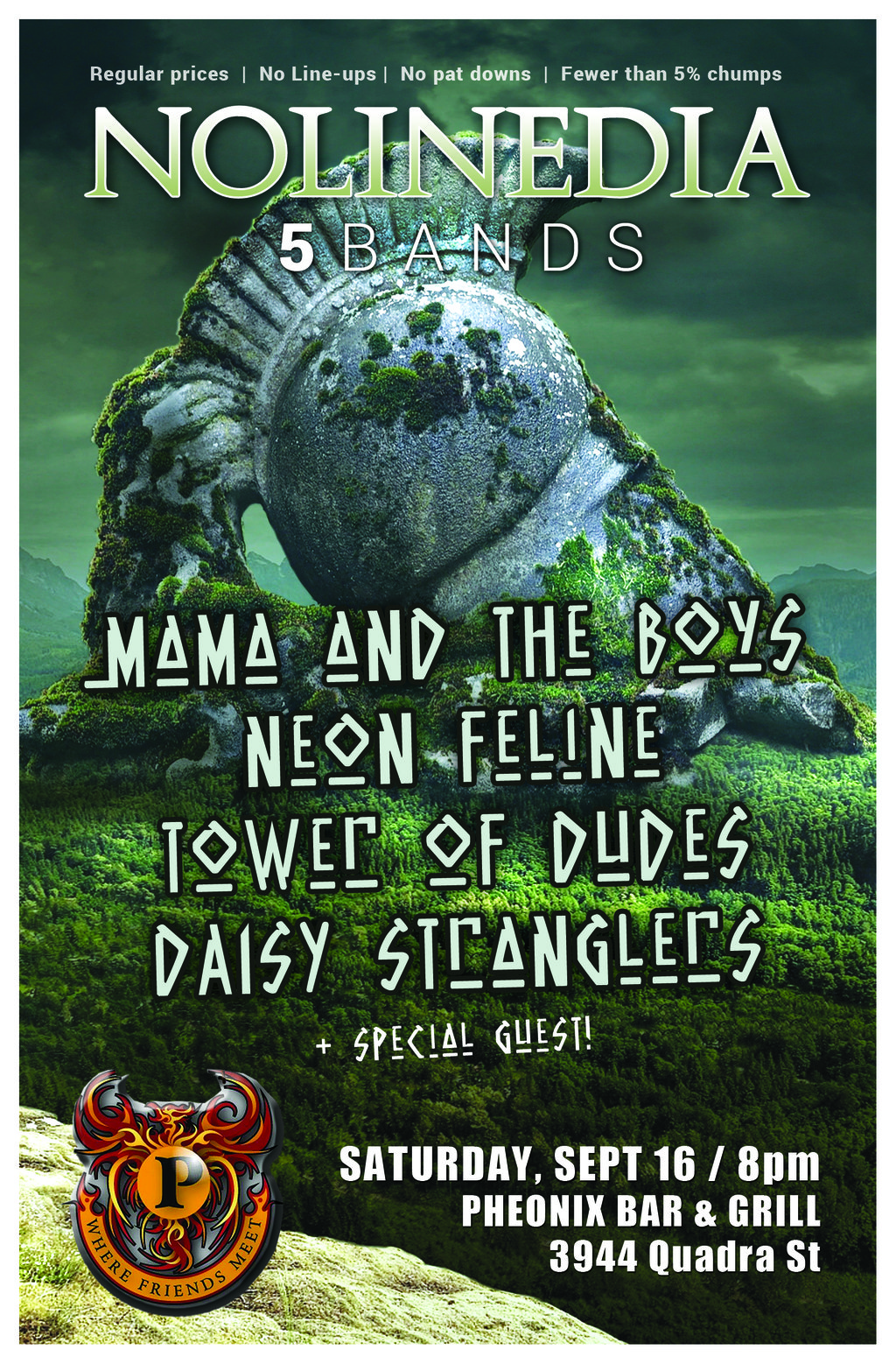 Nolinedia: The Tower of Dudes, Daisy Stranglers, Neon Feline, Mama and the Boys  @ The Phoenix Bar and Grill Sep 16 2017 - Feb 24th @ The Phoenix Bar and Grill