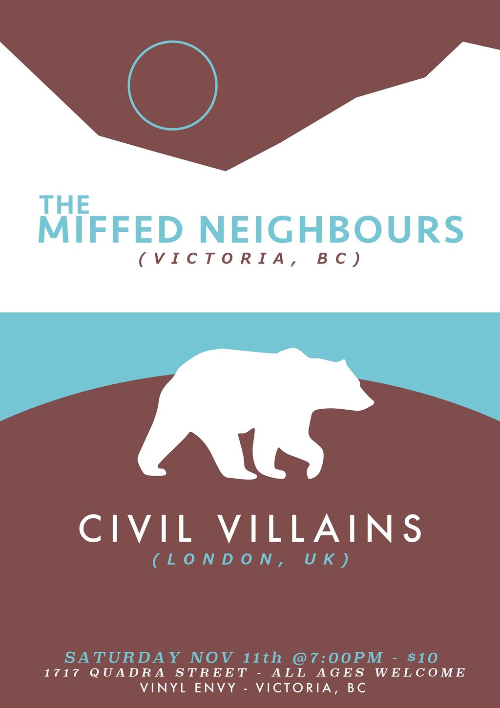 Civil Villains, The Miffed Neighbours @ Vinyl Envy Nov 11 2017 - Mar 13th @ Vinyl Envy