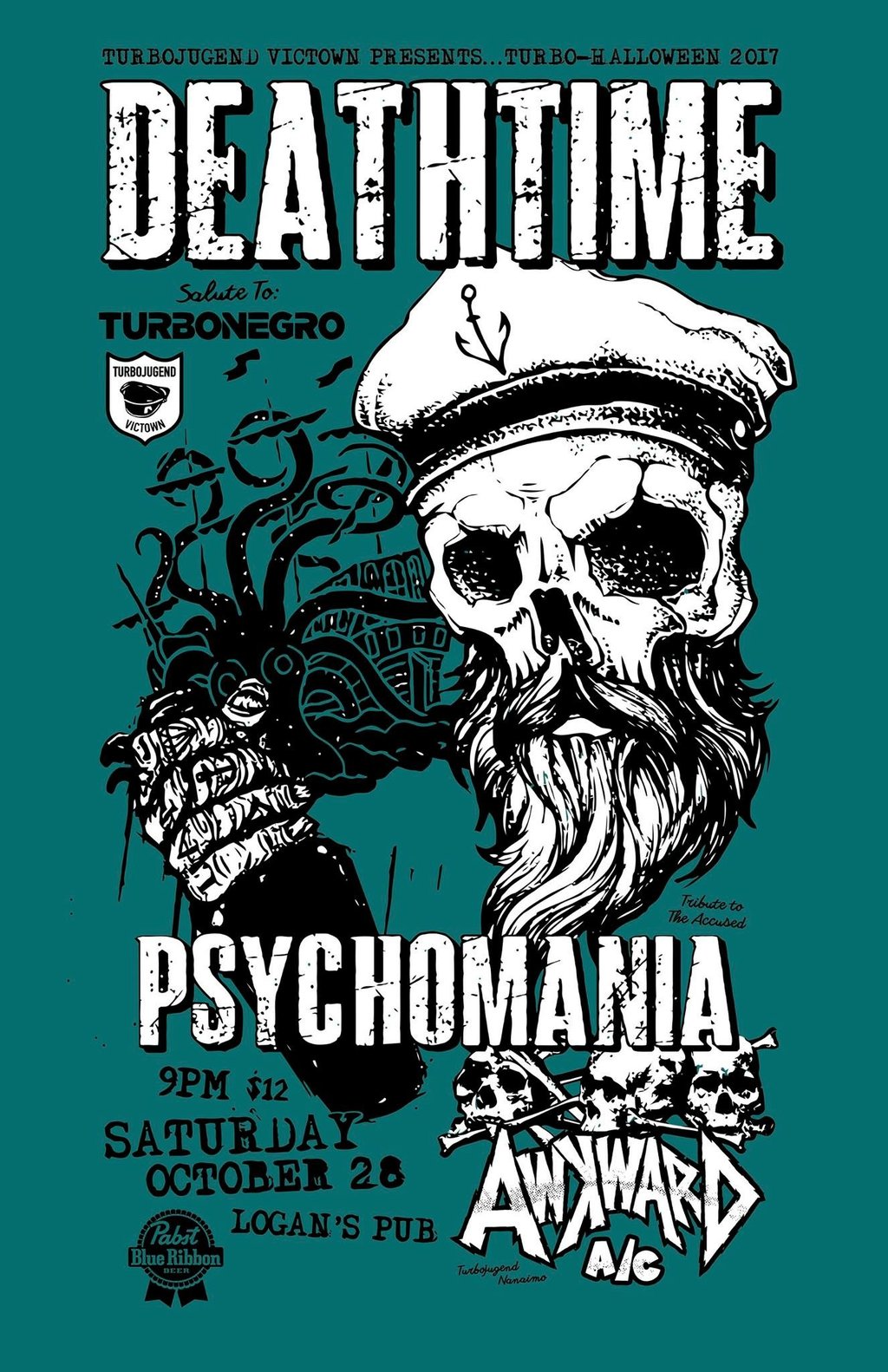 Deathtime: DEATHTIME , AWKWARD AC, Psychomania @ Logan's Pub Oct 28 2017 - Feb 3rd @ Logan's Pub