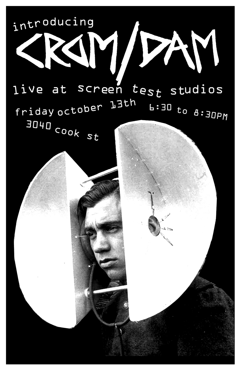 Crom/Dam are playing their debut gig over at Screen Test Studios on Friday the 13th...Victoria's newest band...a two-piece static punk combo. Recommended if you like...thump thump, bzzzzzzzt-bzzzzzzt, yowwww yowwwww, chkkkk chkkkkk!