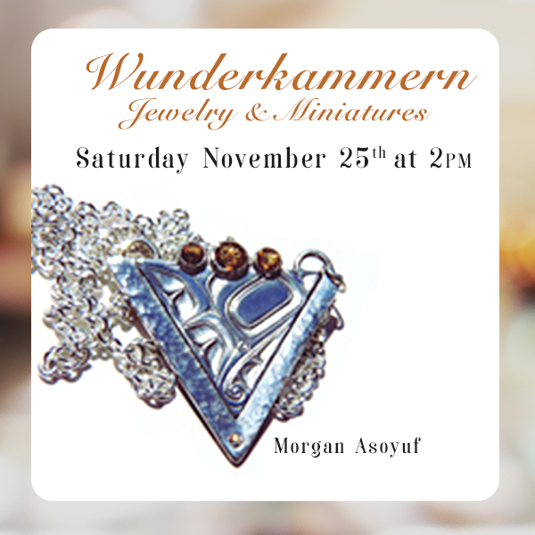 Wunderkammern translates to 'cabinet of curiosities' which were proto-museums in Renaissance Europe. Before public galleries began, individual patrons would demonstrate their breadth of knowledge and wealth of travel via a small room filled to the brim with exotic artifacts. Although it has colonial roots, I couldn't help but register with this idea as I began to put this exhibition together. An incredibly diverse group of artists using an astoundingly unique set of materials, this exhibition will exemplify the diversity and strength of talent along the Northwest Coast.