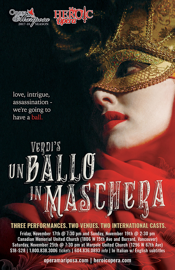 Verdi's Un ballo in maschera: Opera Mariposa @ Marpole United Church Nov 25 2017 - Jan 14th @ Marpole United Church