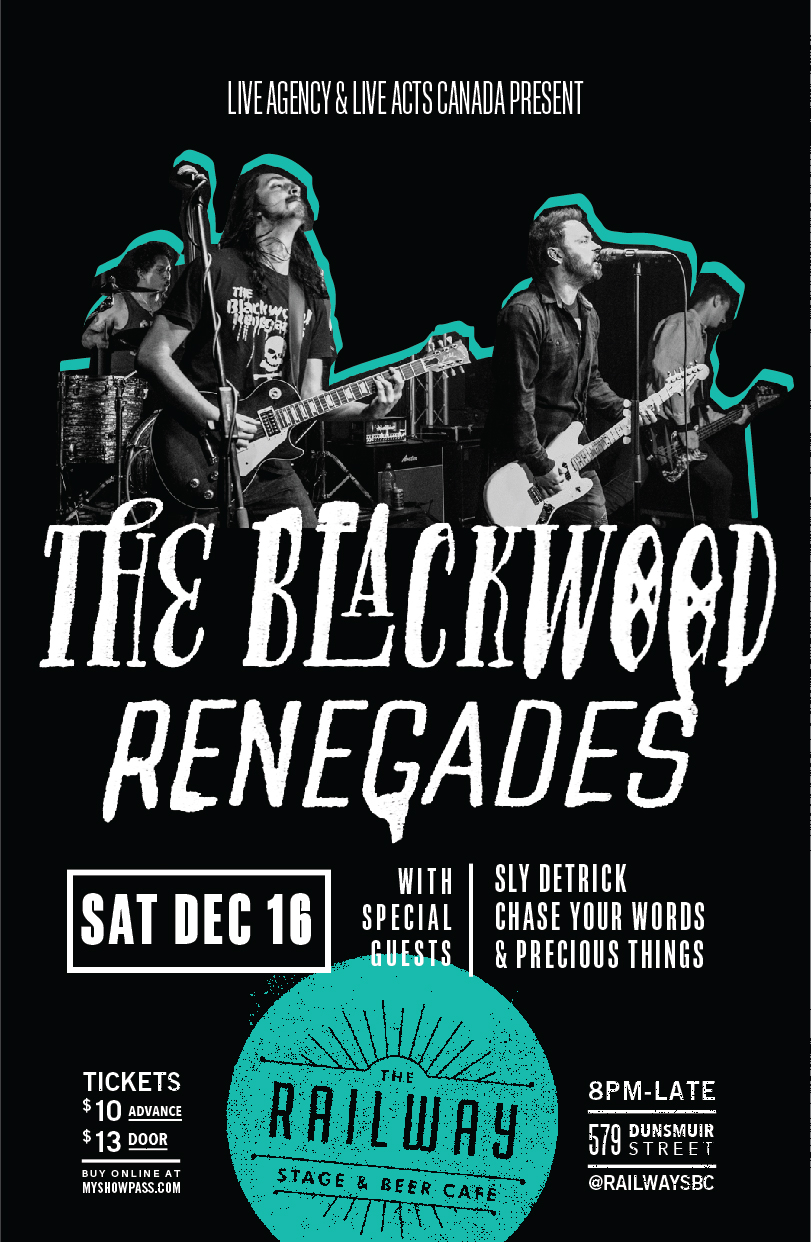Blackwood Renegades , Sly Detrick, Chase Your Words, Precious Things @ The Railway Stage and Beer Cafe Dec 16 2017 - Feb 24th @ The Railway Stage and Beer Cafe