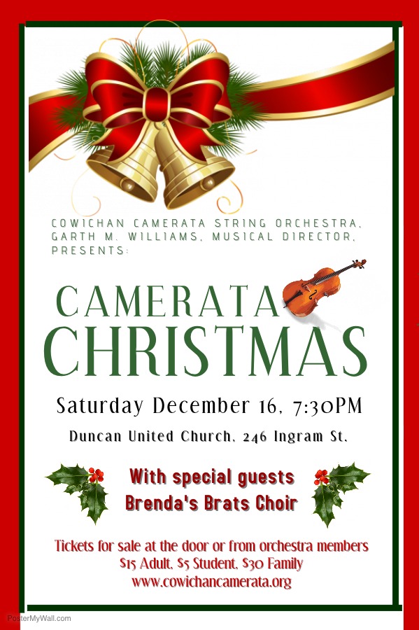 Camerata Christmas is Cowichan's community string orchestra in concert with special guests Brenda's Brats Choir.