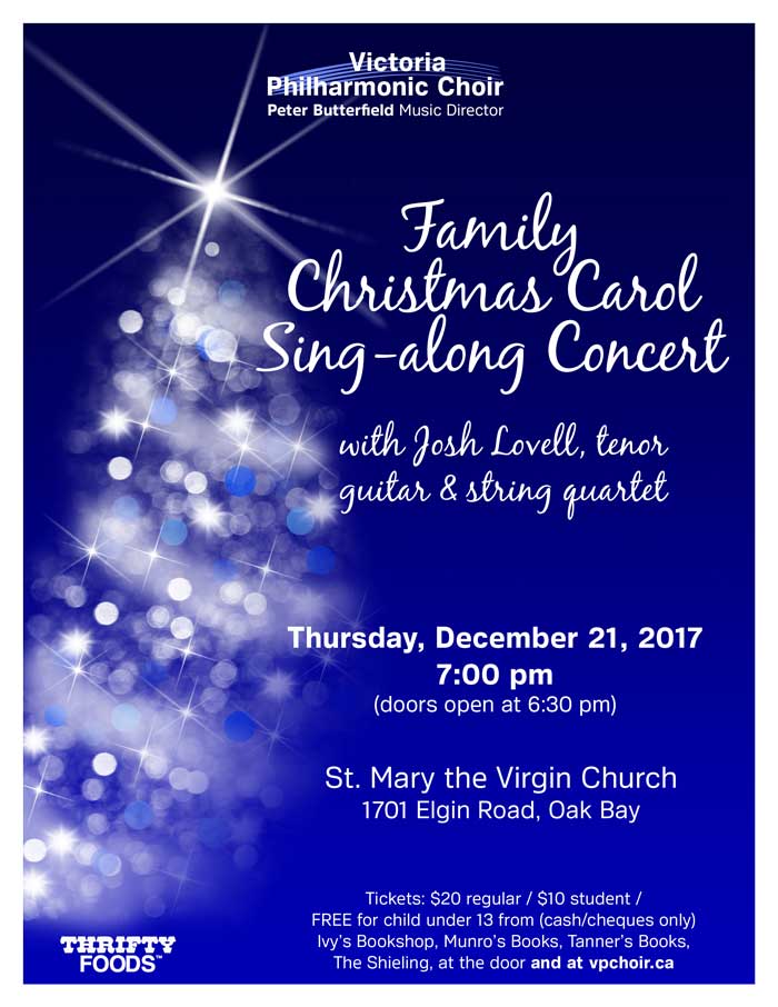Come raise your voice in joyous harmony with the community, Peter Butterfield and the Victoria Philharmonic Choir, at our annual celebration of Christmas carols.