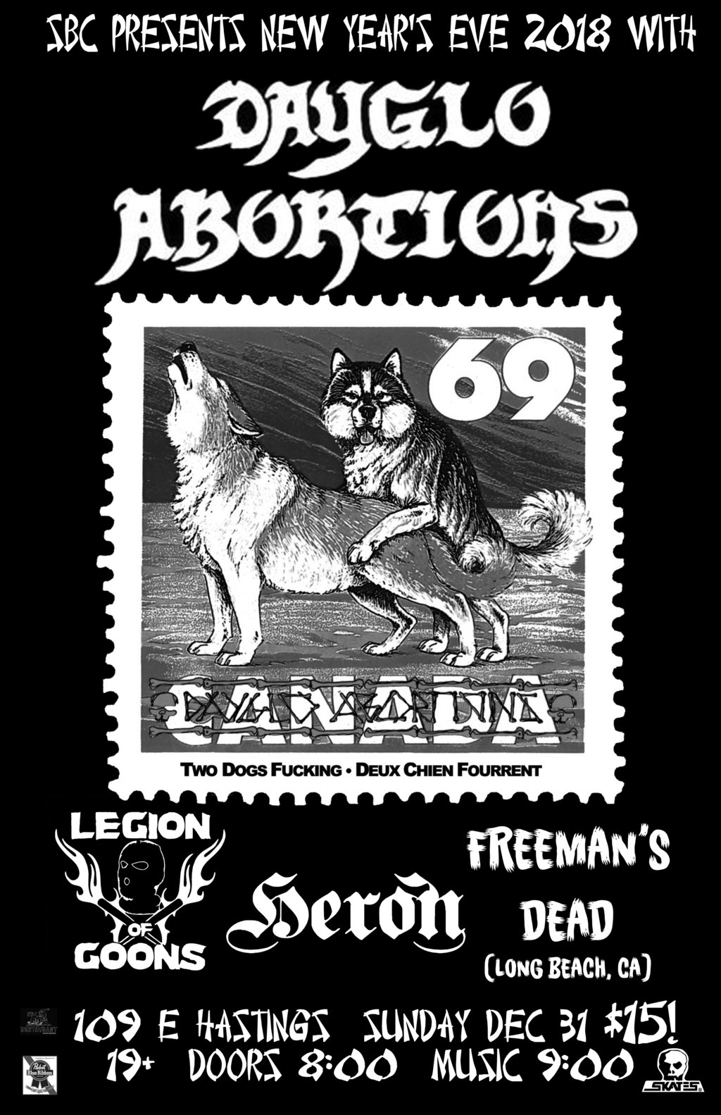 Dayglo Abortions, Heron, Leigon of Goons, Freemans Dead  (longBeach Cal) @ SBC Restaurant Dec 31 2017 - Feb 17th @ SBC Restaurant