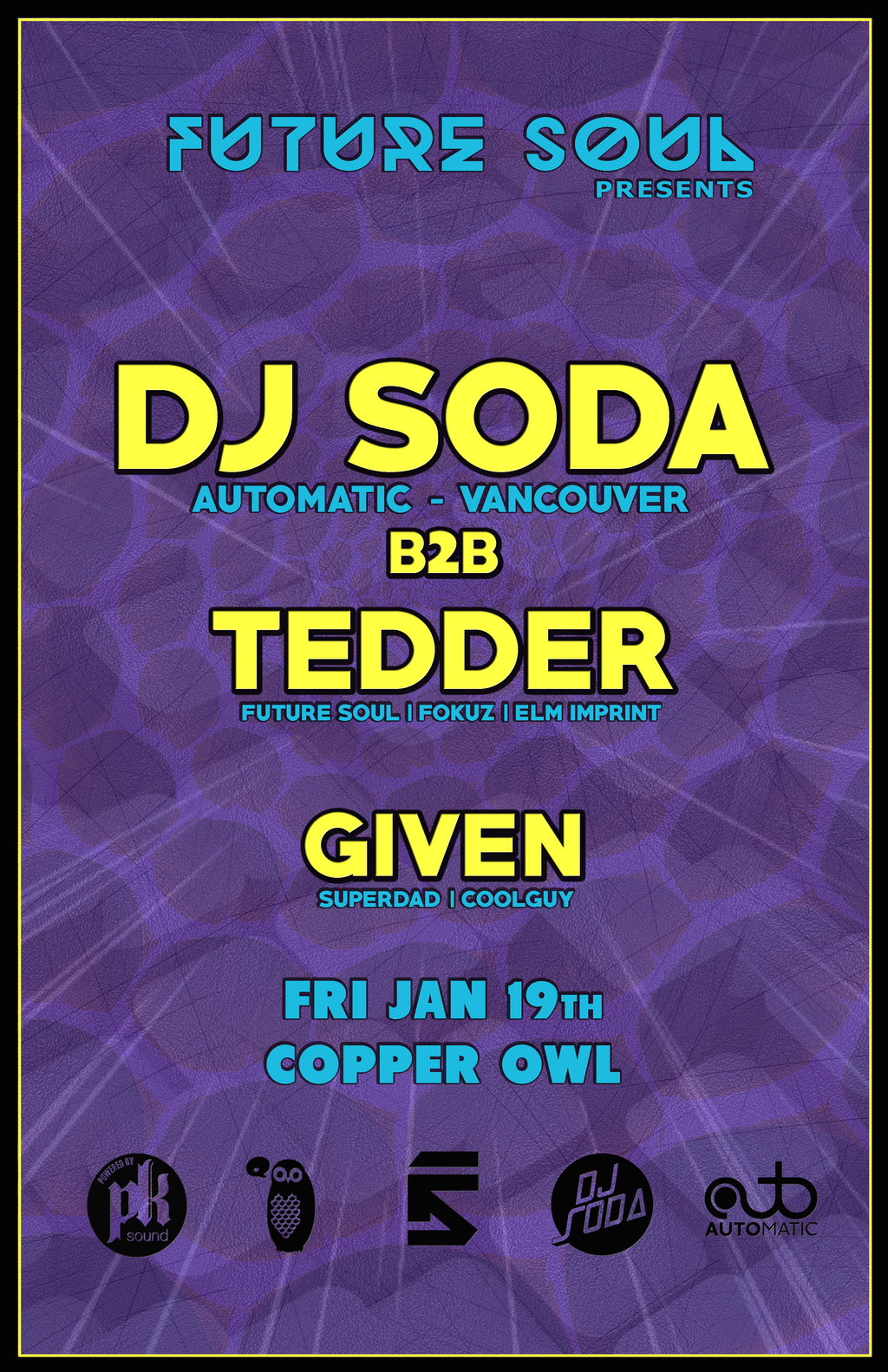 Future Soul presents: DJ SODA, Tedder, Given @ Copper Owl Jan 19 2018 - Feb 8th @ Copper Owl