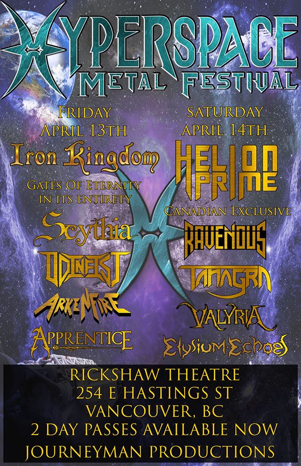Hyperspace Metal Festival is a 2 day event focused on power metal and the melodic side of metal. The aim is to bring together fans of the genre from all around this corner of the world and showcase all of the incredible bands playing the style in one event at Vancouver's esteemed Rickshaw Theatre.