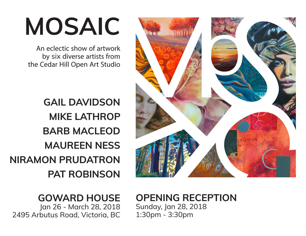 MOSAIC - Group Art Show: Gail Tovah Davidson, Mike Lathrop, Barb Macleod, Niramon Prudatron, Pat Robinson  @ Goward House Gallery Jan 26 2018 - Feb 24th @ Goward House Gallery