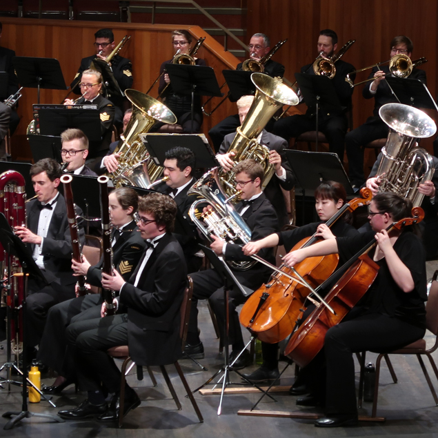 Dr. Gerald King and Lt(N) Vincent Roy conduct the UVic Wind Symphony and the Naden Band of the Royal Canadian Navy is the fifth annual collaboration of these two outstanding ensembles—a partnership that is unique in Canada. Performing Aspen Jubilee by Ron Nelson, Rest by Frank Ticheli, To Walk with Wings by Julie Giroux, and Sinfonia Hungarica/From Ancient Times by Jan Van der Roost.