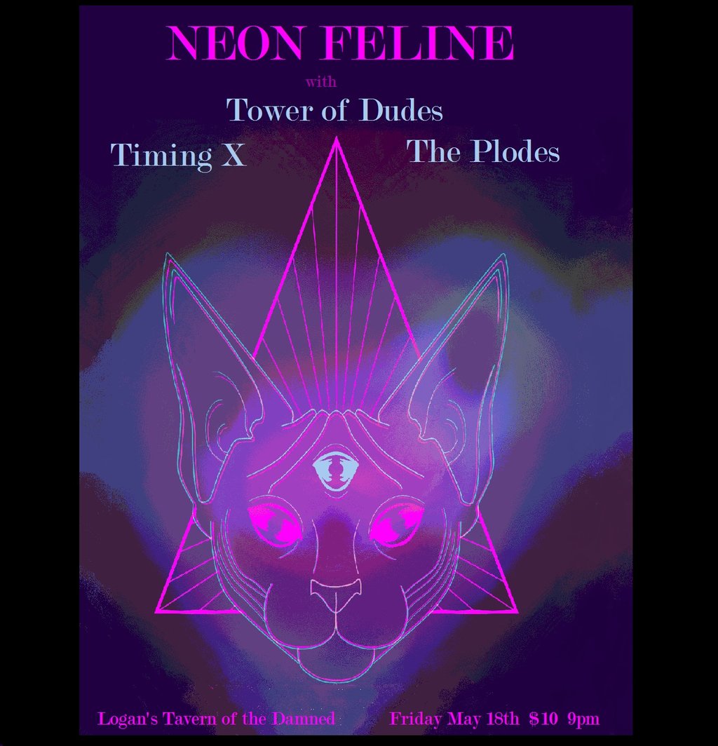 Electro-punk: Neon Feline, V.C.R., Timing X, The Tower of Dudes @ Logan's Pub May 18 2018 - Feb 24th @ Logan's Pub