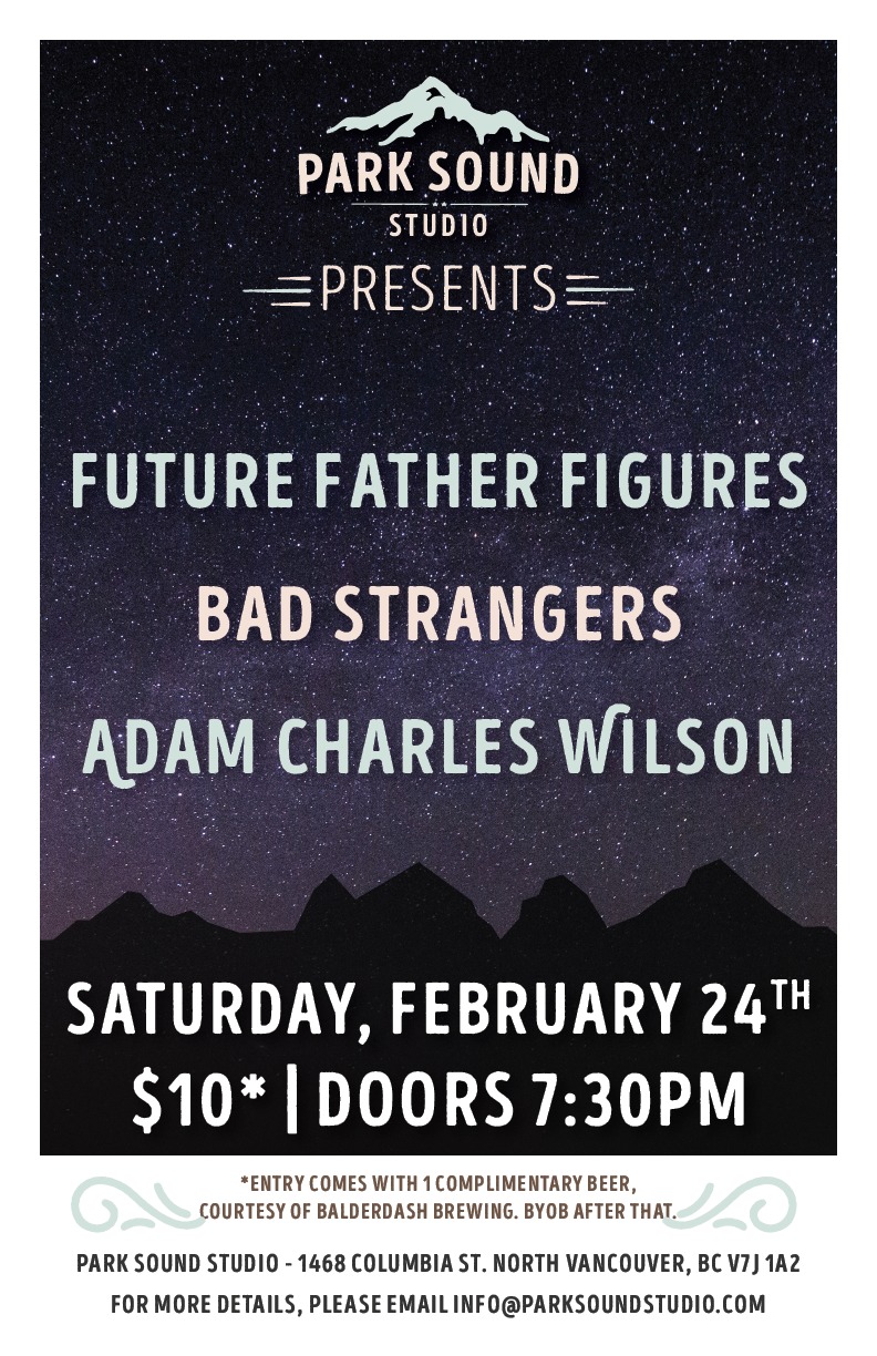 Park Sound Presents is a monthly musical showcase hosted at Park Sound Studio featuring 3 acts from the Vancouver Area. On Saturday, February 24th we’re hosting Future Father Figures, Bad Strangers & Adam Charles Wilson.