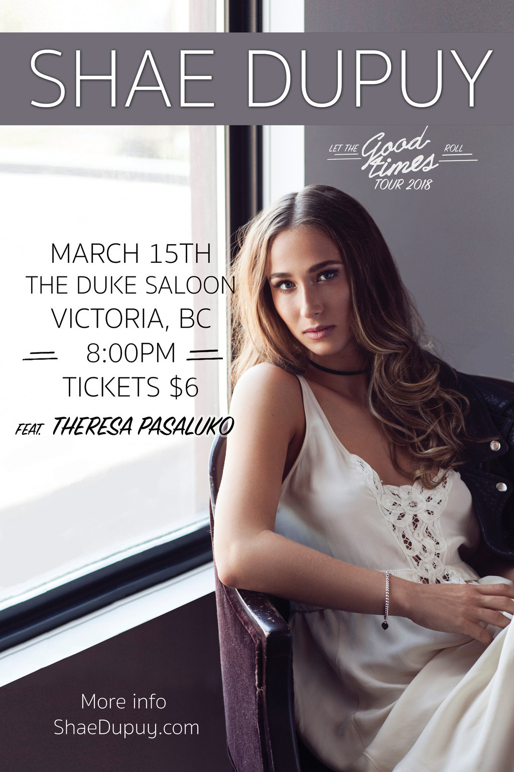 Shae Dupuy brings her Let the Good Times Roll tour to Victoria on March 15th at The Duke Saloon, with special guest Theresa Pasaluko.