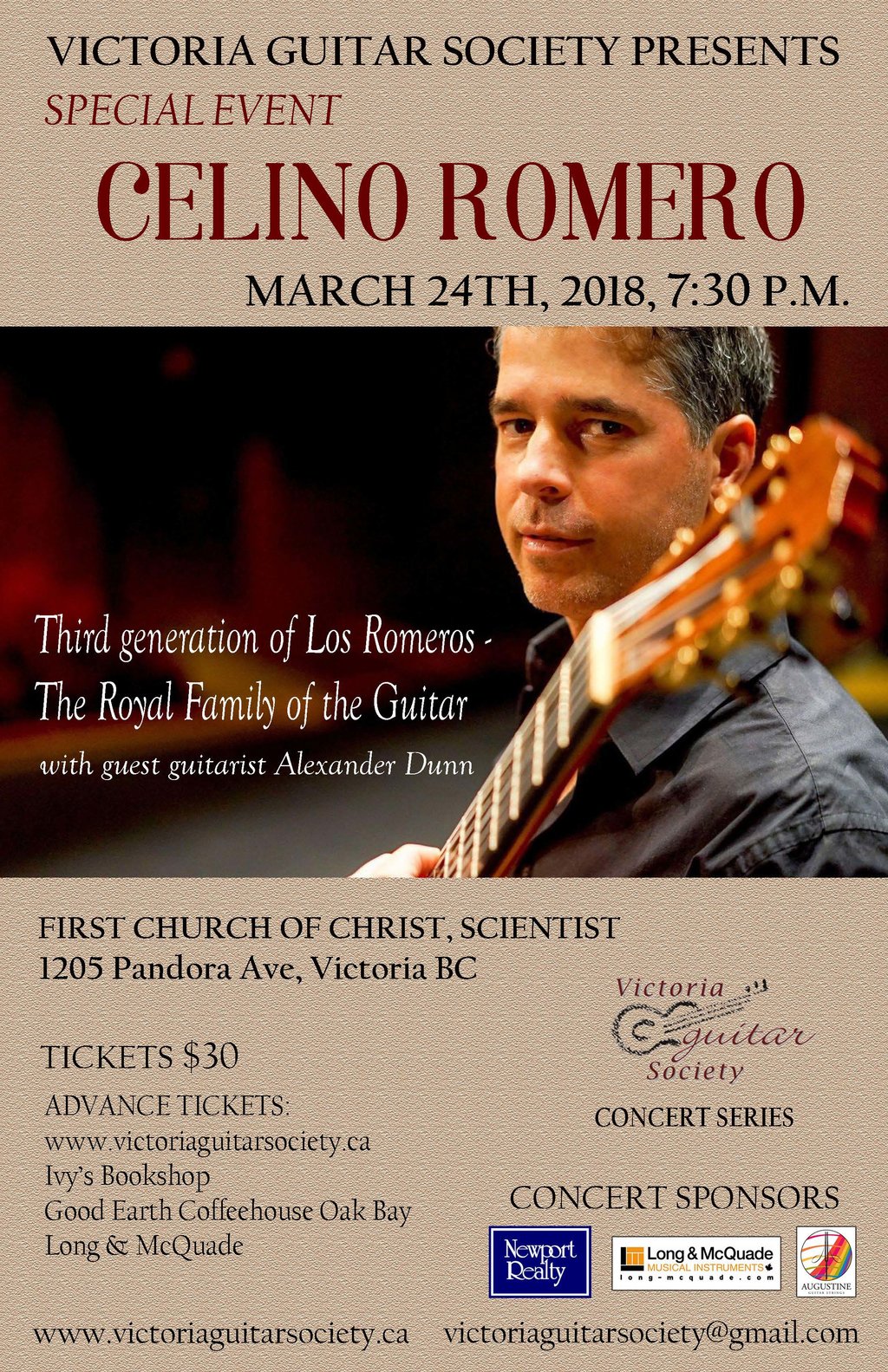 They are regarded by the New York Times as “The Royal Family of the Guitar.” Celino was joined 6 years later by his cousin Lito, who stepped in to replace their grandfather. Los Romeros have performed for dignitaries worldwide, including two American Presidents, Pope John Paul II and the King of Spain. In 2007, Los Romeros were granted The Recording Academy’s President’s Merit Award from the GRAMMYS in honor of their artistic achievements. Celino frequently performs as a soloist in recital and with major orchestras. In his first Victoria visit, Celino Romero will perform solo pieces and duos with Alexander Dunn.