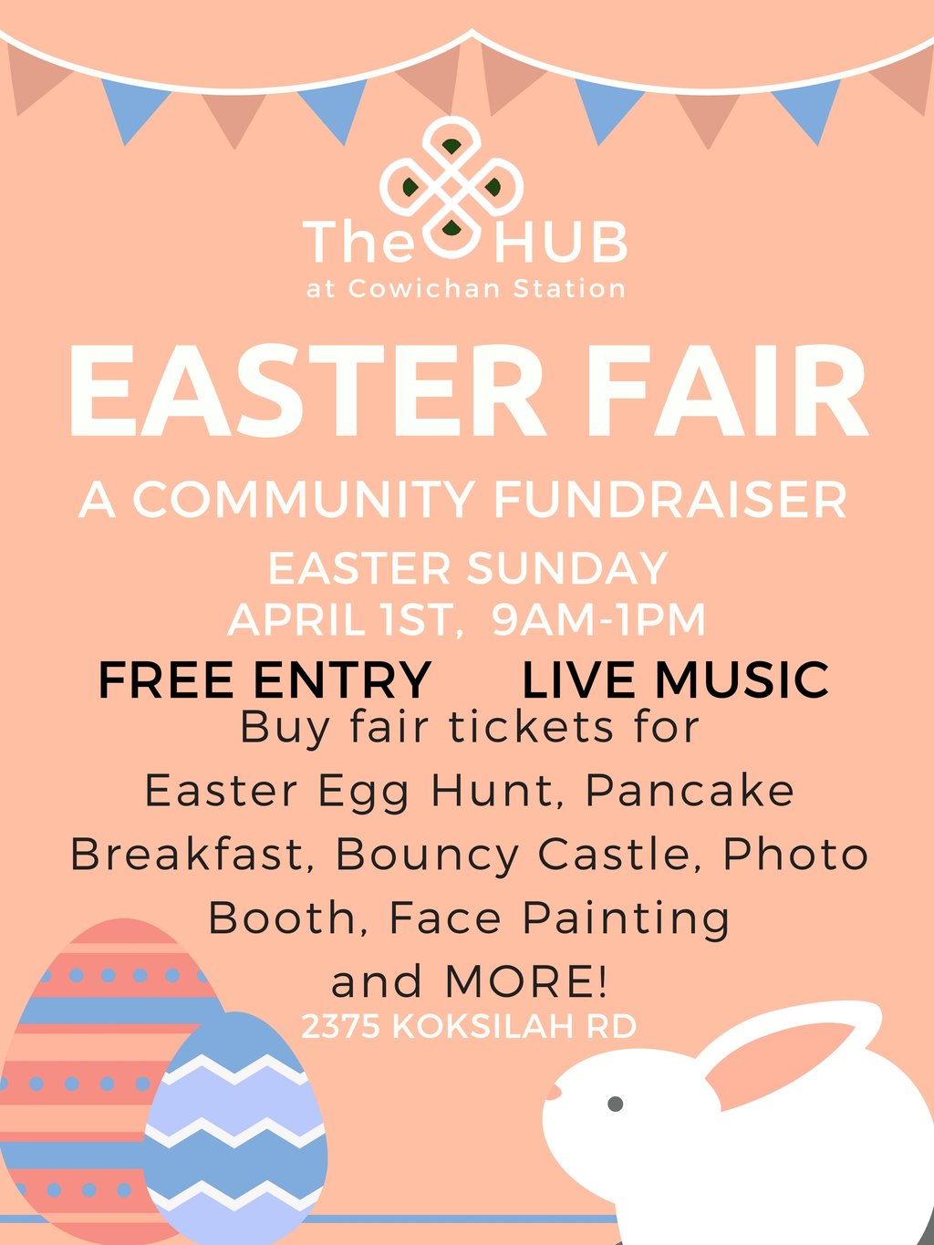 Come join us on Easter Sunday, April 1st from 9-1 for some egg-cellent family fun. There will be a bouncy castle, forest egg hunt, pancakes and a woodworking project (kids can work on a birdhouse project in our wood workshop). There will also be music, popcorn, Face painting, crafts, and a huge DVD sale through our HUB Film Club ($1 a DVD with 4000 to choose from!).