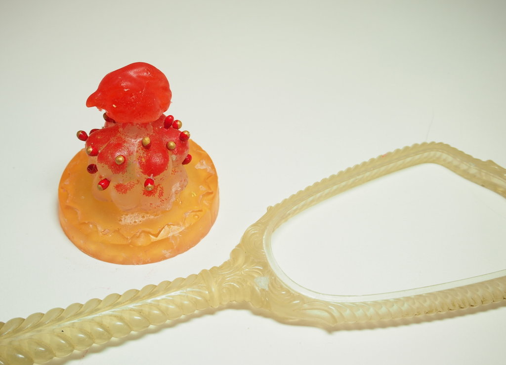 In this work the audience is encouraged to explore a ‘hide and seek’ setting with cupboards and drawers to open and cloches to lift. This is designed to ignite a buried or muffled sense of curiosity. Uncanny objects/sculptures made from cast and altered soap are revealed as well as a sense of surprise, intrigue or distaste from the viewer. Sensory enhancing tools are offered for the viewer to experience more fully their discoveries. The purpose of the tools is elusive, reminiscent of a magnifying glass, a fork or a hearing aid. I Wonder is an attempt to help people tap back into the thrill of unexpected discovery, resulting in stirrings of buoyancy and motivation.