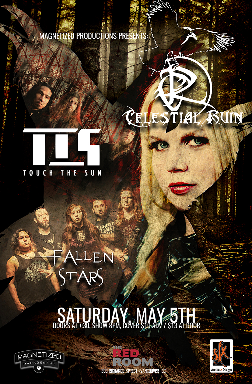 Celestial Ruin w/ Touch The Sun and Fallen Stars. Saturday, May 5th at Red Room, 398 Richards Street, Vancouver, BC