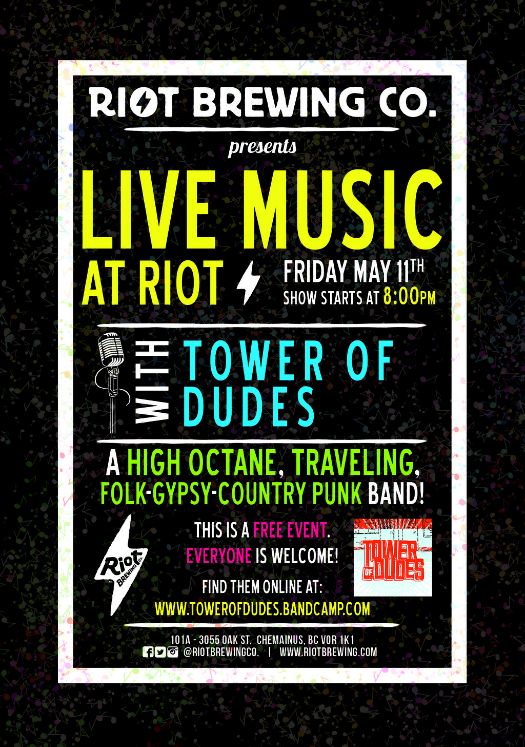 Fri. May 11th 2018 Riot Brewing Co. Chemainus BC Free