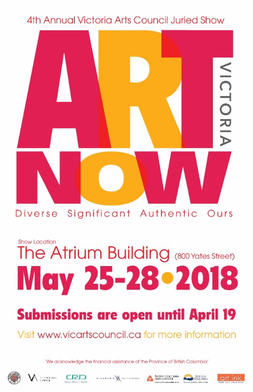 Please join us for the 4th Annual Art Victoria Now public awards ceremony and opening reception on Thurday, May 24th from 7:30-10:30pm, featuring live entertainment, light refreshments and cash bar (proceeds go towards supporting Victoria Arts Council programming). This is a FREE event and is open to the public. Art Victoria Now is a juried exhibition featuring the work of over 70 local artists resident in Greater Victoria and the surrounding areas. Come experience an outstanding display of work from a range of media including painting, photography, ceramic and fine craft.