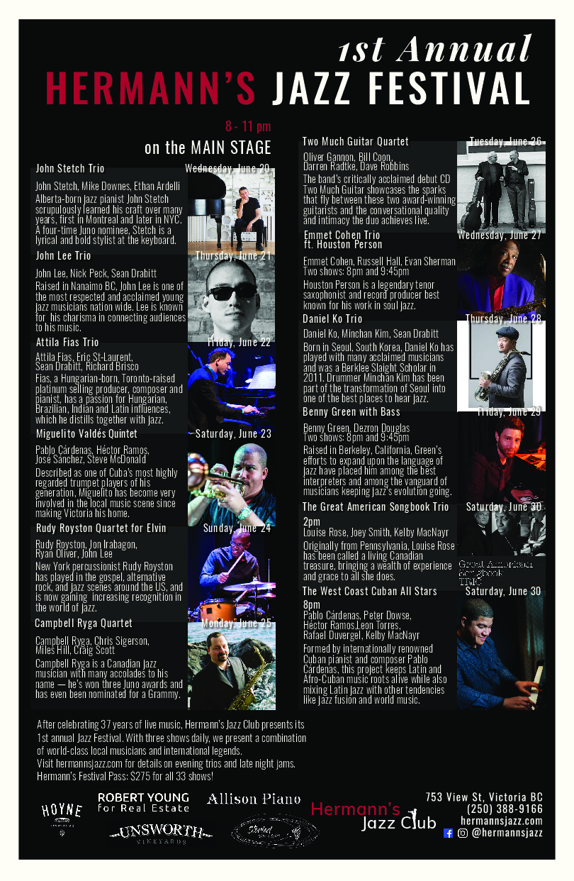Hermann's 1st Annual Jazz Festival: Hermann's Jazz Festival Pass, $275 @ Hermann's Jazz Club Jun 30 2018 - Jan 18th @ Hermann's Jazz Club