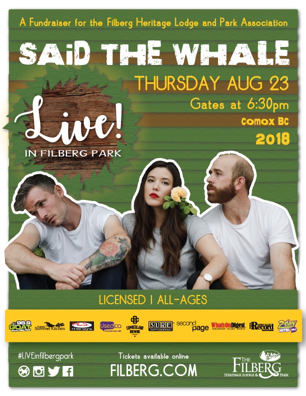 As part of #LIVEinFilbergPark, the Filberg Heritage Lodge & Park Association presents Said The Whale in concert.