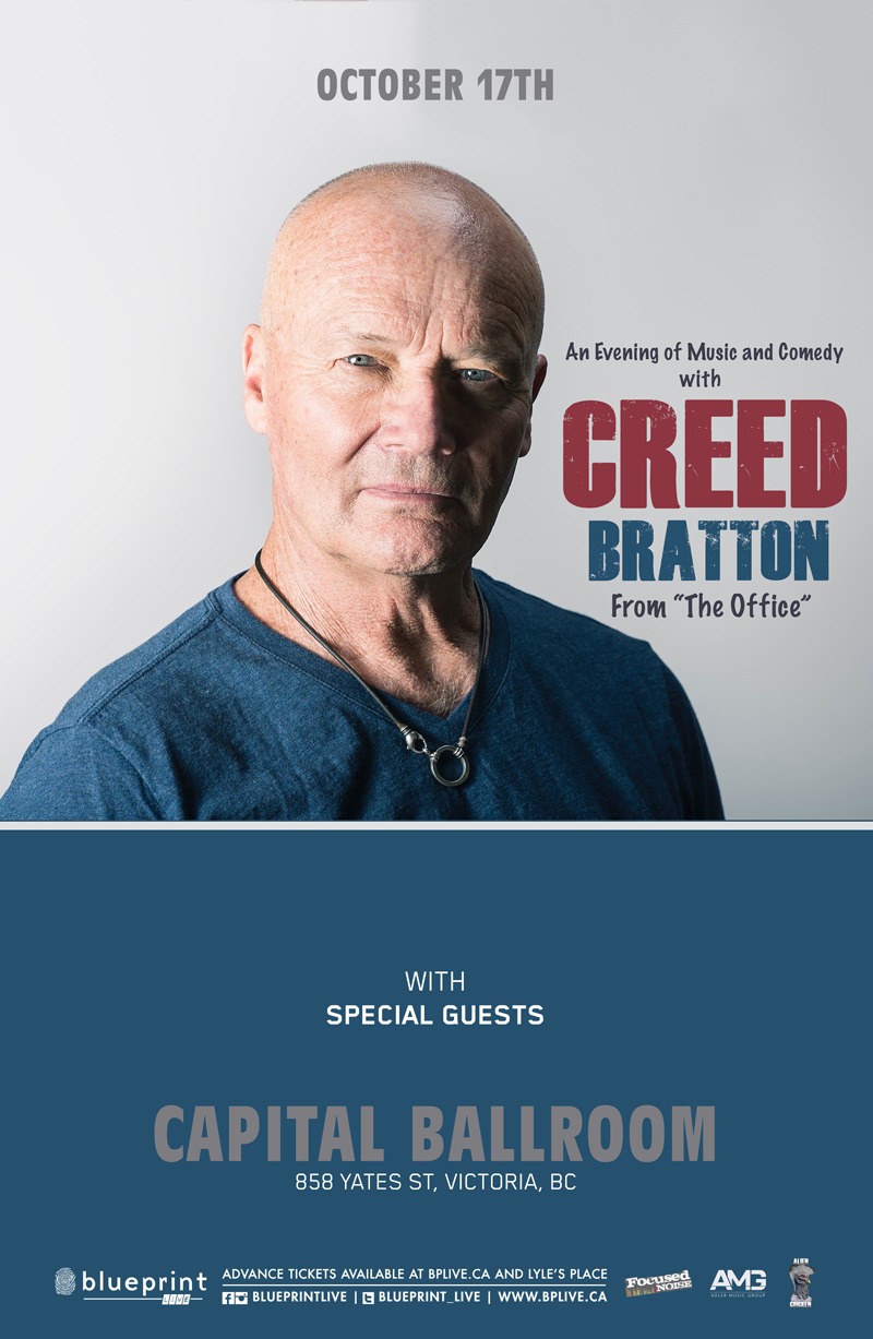 Creed Bratton (of The Office) comes to Victoria, Wednesday, October 17th at Capital Ballroom for an evening of music and comedy! With Special guests TBA. Doors - 9PM 19+