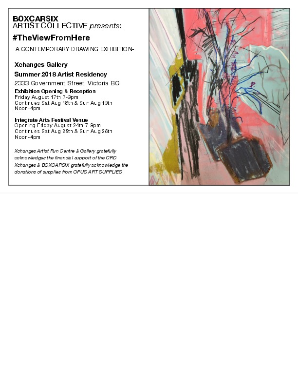 Contemporary drawing exhibition, displaying works created during the Xchanges Summer 2018 Residency, reflecting the dynamic environs and cityscape from the perspective of the gallery's upper balcony.