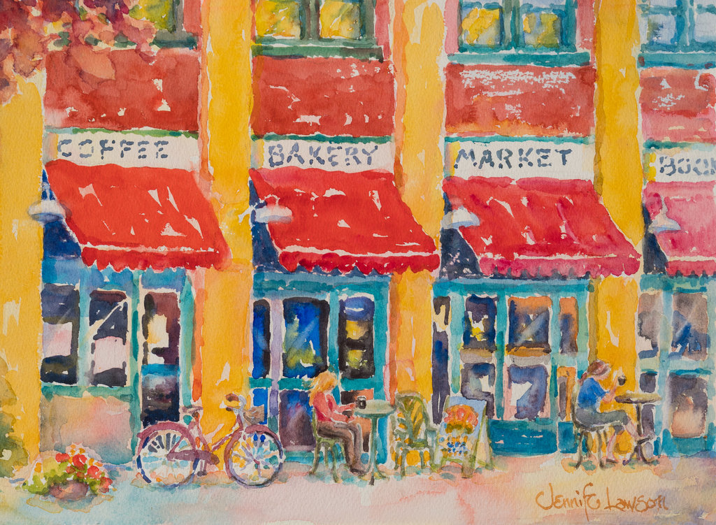 Jennifer paints solely in watercolour on pure rag paper. A plein air painter, her art reveals her as an optimist who is absorbed in the beauty around her.
