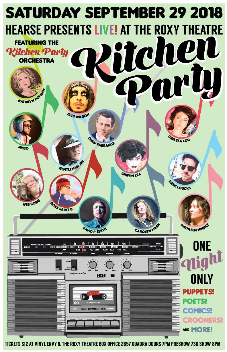 Hearse Presents Live! Kitchen Party at the Roxy Theatre: Wes Borg, Carolyn Mark, Kathryn Popham, Chelsea Lou , Hearse, David P. Smith, Kathleen Miniely, Dane Loucks, Drew Farrance, Eddi Wilson , Griffin Lea
