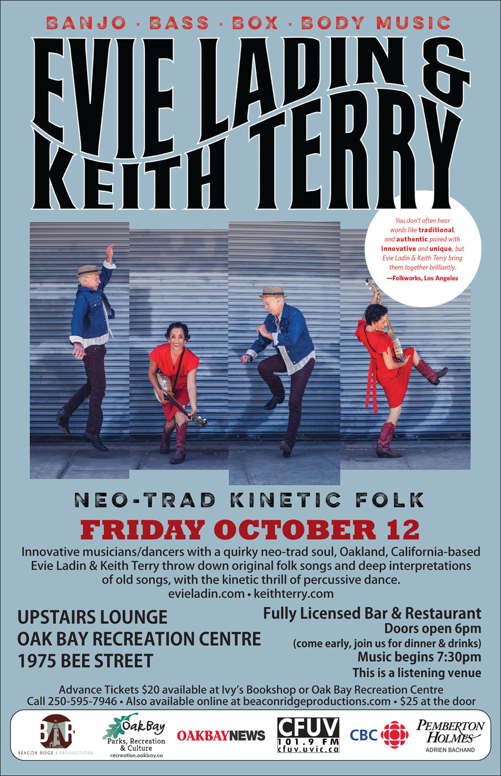 Advance tickets $20 at Ivy's Bookshop & Oak Bay Recreation Centre | $25 at the door