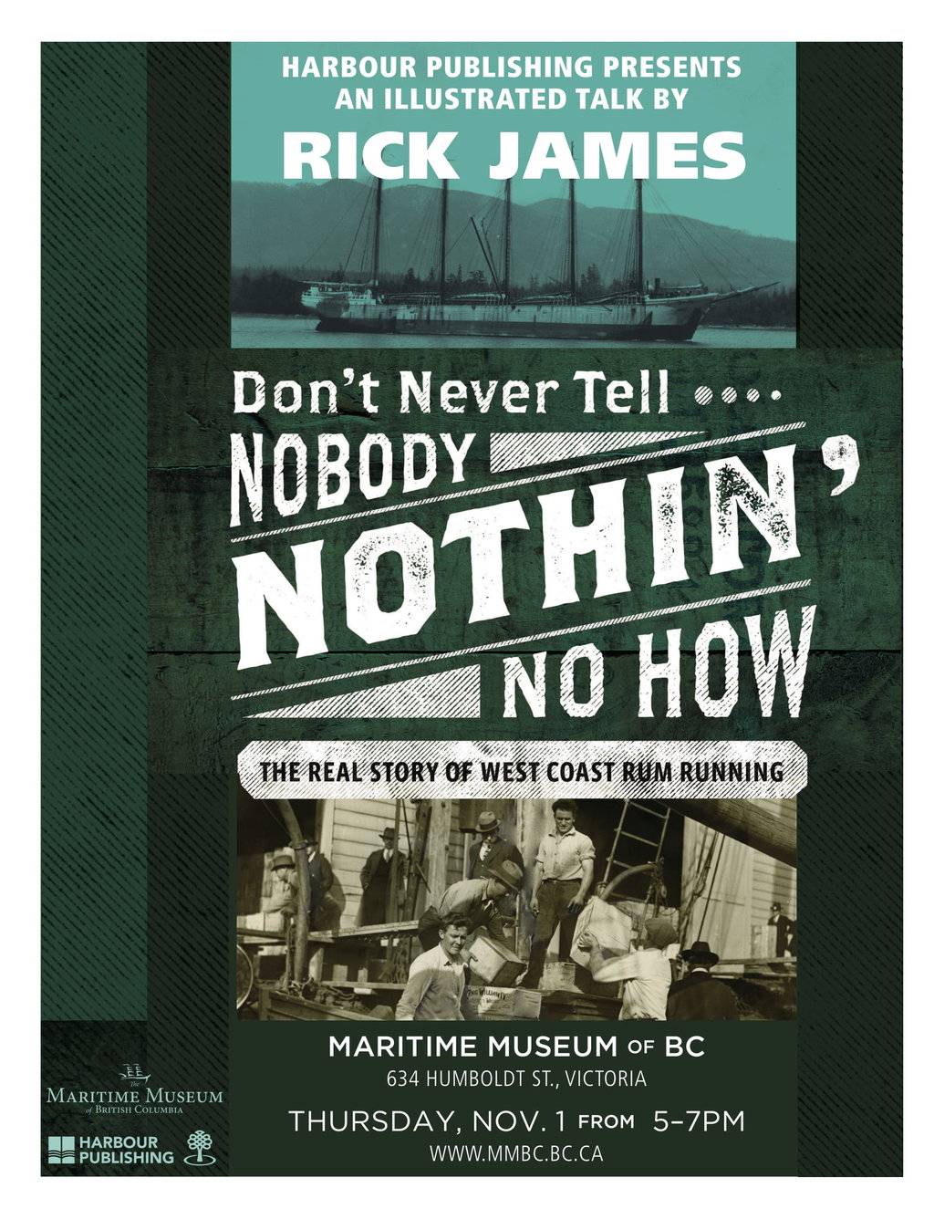 On November 1 (5 PM – 7 PM), James will give an illustrated lecture on his recently released a book, Don’t Never Tell Nobody Nothin’ No How: The Real Story of West Coast Rum Running! This talk is FREE and books will be available for purchase at the event.