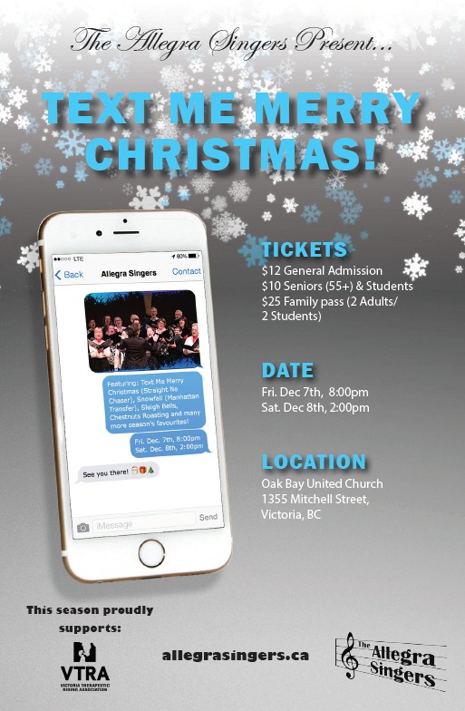 The Allegra Singers - Text Me Merry Christmas @ Oak Bay United Church Dec 8 2018 - Feb 25th @ Oak Bay United Church