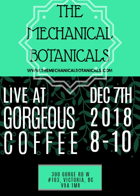 Gorge-ous Coffee is excited to host The Mechanical Botanicals on December 7th at 8pm. An acoustic duo à la Simon & Garfunkel, they're based in Tumbler Ridge BC and will be playing originals from their debut EP as well as covers. With an acoustic guitar, keys and buckets of harmonies, they will perform music based around their different lives growing up in Wales and Canada, as well as covers. Admission by donation.