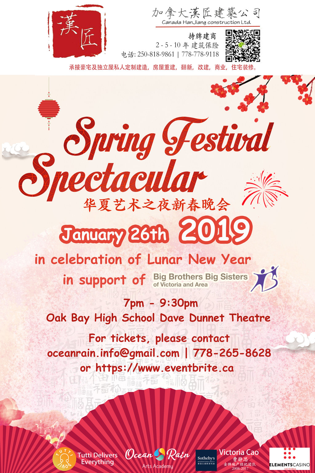 In celebration of the Lunar new year, Ocean Rain Arts Academy presents ‘2019 Spring Festival Spectacular’ with Chinese traditional dance, music, hip-hop, drama, recitation, art show and more. Come and join us for enjoying the magical moments of Spring Festival!