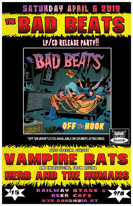Come on down to the Railway Club on Saturday April 6th and help The Bad Beats celebrate the release of their new album, "Off the Hook" available on LP and CD from Soundflat Records.