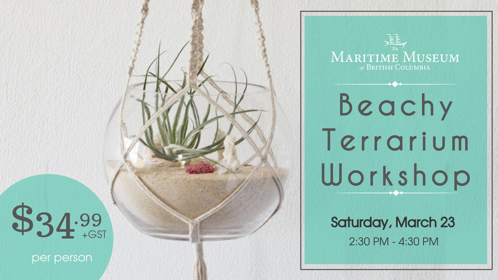 Bring the tranquility of the beach back home by creating your own beachy terrarium at the Maritime Museum of British Columbia!