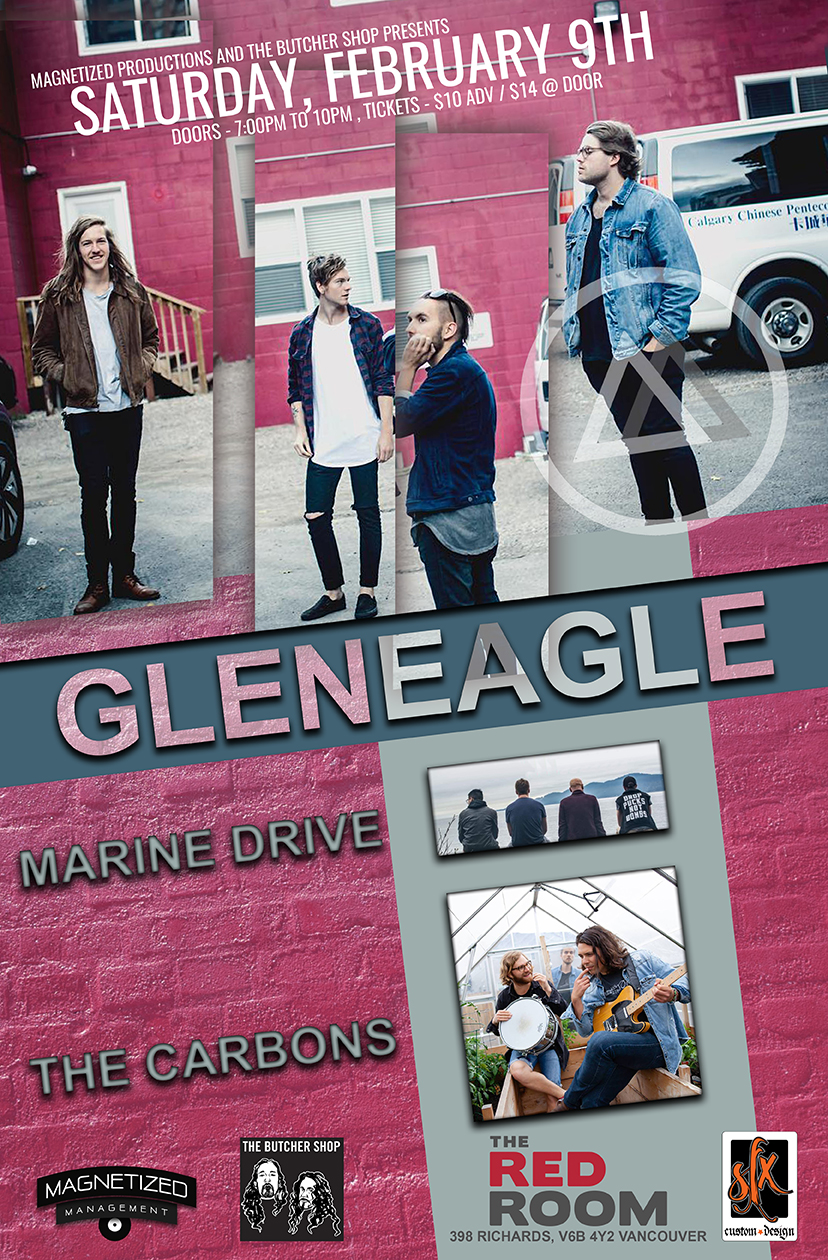 Gleneagle // Marine Drive // Carbons. Saturday, February 9th @ Red Room, 398 Richards Street, Vancouver, BC