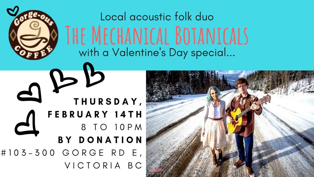 On their second time gracing Gorge-ous Coffee's stage, The Mechanical Botanicals play all of the *best* love songs around for Valentine's Day.