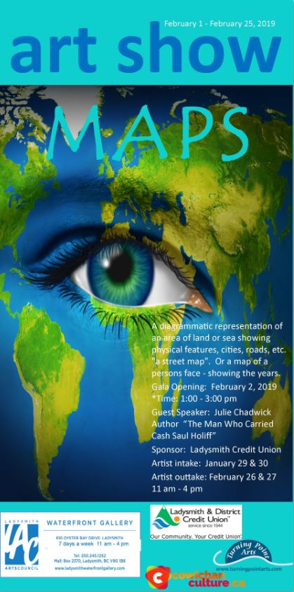 Maps runs at the Ladysmith Waterfront Gallery (610 Oyster Bay Drive) from February 1st - 25th, 2019