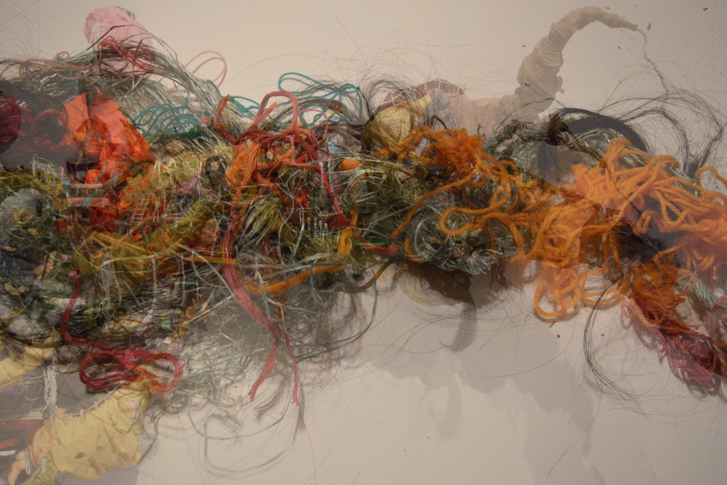 Tangled, a site-specific sculpture made from wire and fabric, weaves itself around the gallery like horizontal roots, tangling around its self. Using the miniature worlds she’s know for, the artist uses tiny glowing dwellings nestled deep into the sculptural tangle to explore the tension the word ‘tangled’ holds for her. From an early memory of her hair being painfully brushed by her grandmother, to the broader feeling of being entangled in either poor or positive choices and feeling confined regardless of the options, it is a word that has exemplified discomfort and immobility.