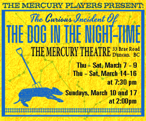 Tickets are available at Ten Old Books and First Chiropractic Clinic in Duncan and online eventbrite.ca www.mercuryplayers.org.
