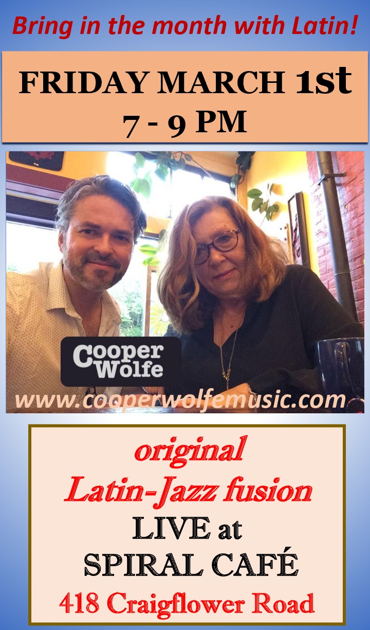Dee Cooper on piano and Dean Wolfe on guitar perform original latin-jazz fusion at the Spiral. For this performance Cooper Wolfe will debut brand new compositions.