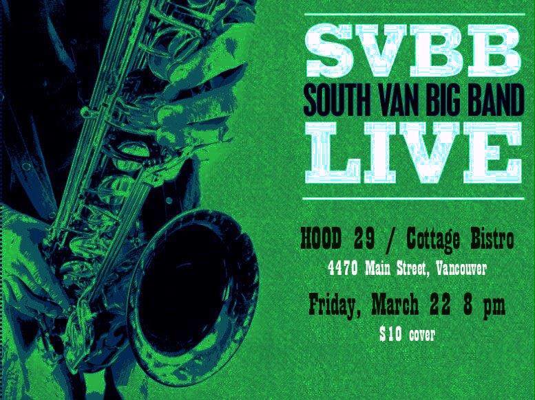 South Van Big Band @ Cottage Bistro/ Hood 29 Mar 22 2019 - Jan 14th @ Cottage Bistro/ Hood 29