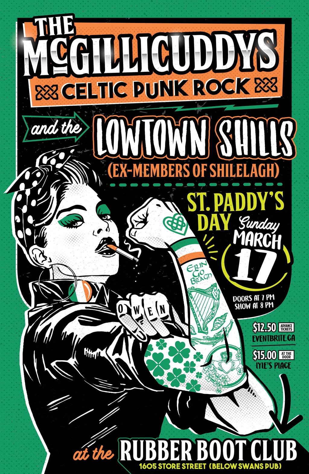 Join Celtic Punk Legends The McGillicuddys and The Lowtown Shills for a few pints and a mad little St. Patrick's Day dance in Victoria's best sounding basement The Rubber Boot Club (under Swans)!
