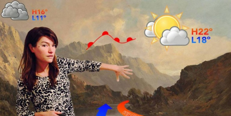 Using a temperamental broadcast media green screen, this piece explores our complicated relationship to weather. Landscape painting, small talk, meteorological science and pathetic fallacy – the attribution of human feelings to non-human things, like the weather – come together in this personal and factual work.