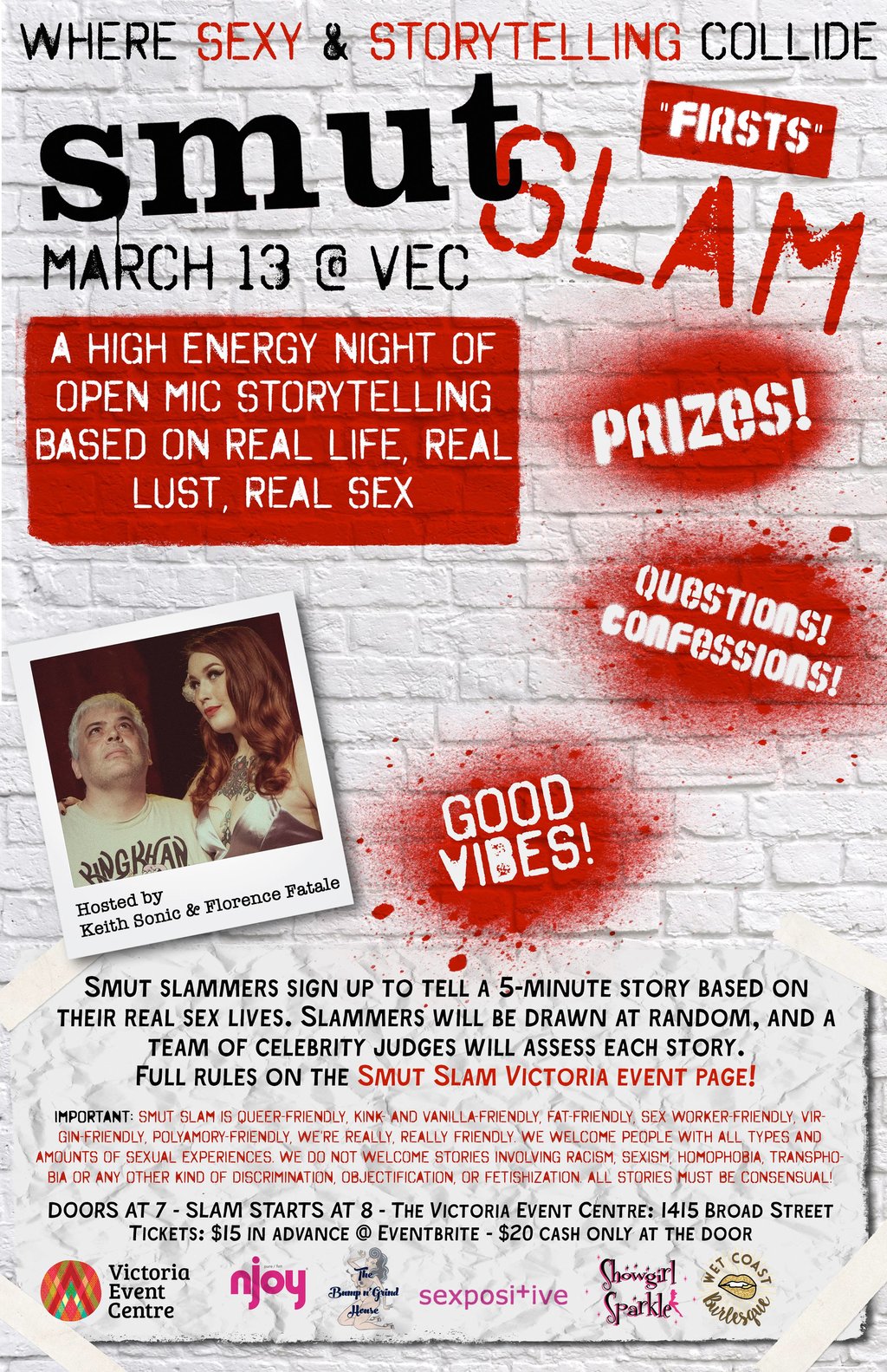 Smut Slam Victoria: "Firsts" @ Victoria Event Centre Mar 13 2019 - Mar 11th @ Victoria Event Centre