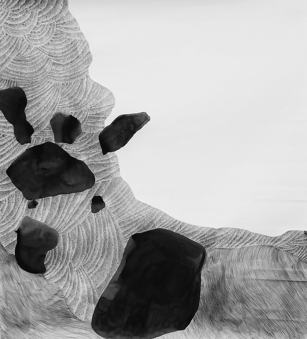 Many of us don't give a second thought to the ground beneath our feet and its origins, given its apparent permanence and stability. However, the histories of majestic mountains and mundane pebbles tell of fantastical, wondrous and awe-inspiring events that led to their creation. Mass Movement is an exhibition that challenges our perception of the familiar landscapes that we inhabit and reveals the mystery and drama beneath our feet. The exhibit consists of a series of drawings that incorporate elements of photographs, maps and geological diagrams to explore geological processes and rock formations.