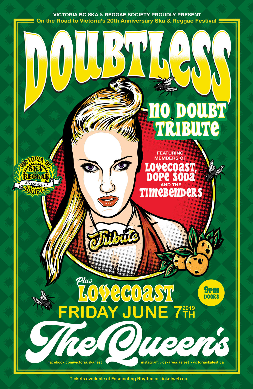Victoria BC Ska & Reggae Society is excited to bring a bit of nostaliga along with involving some of your favourite Island bands in a new tribute show never presented in Nanaimo. Please give a warm round of applause to DOUBTLESS - A Tribute to No Doubt featuring members of Lovecoast, Dope Soda, & The Timebenders.