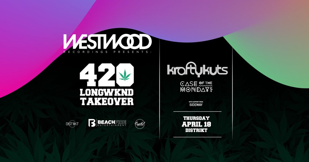 Westwood Recordings 420 Weekend Takeover: Krafty Kuts, Case of the Mondays, Sideway @ Distrikt Apr 18 2019 - Feb 8th @ Distrikt