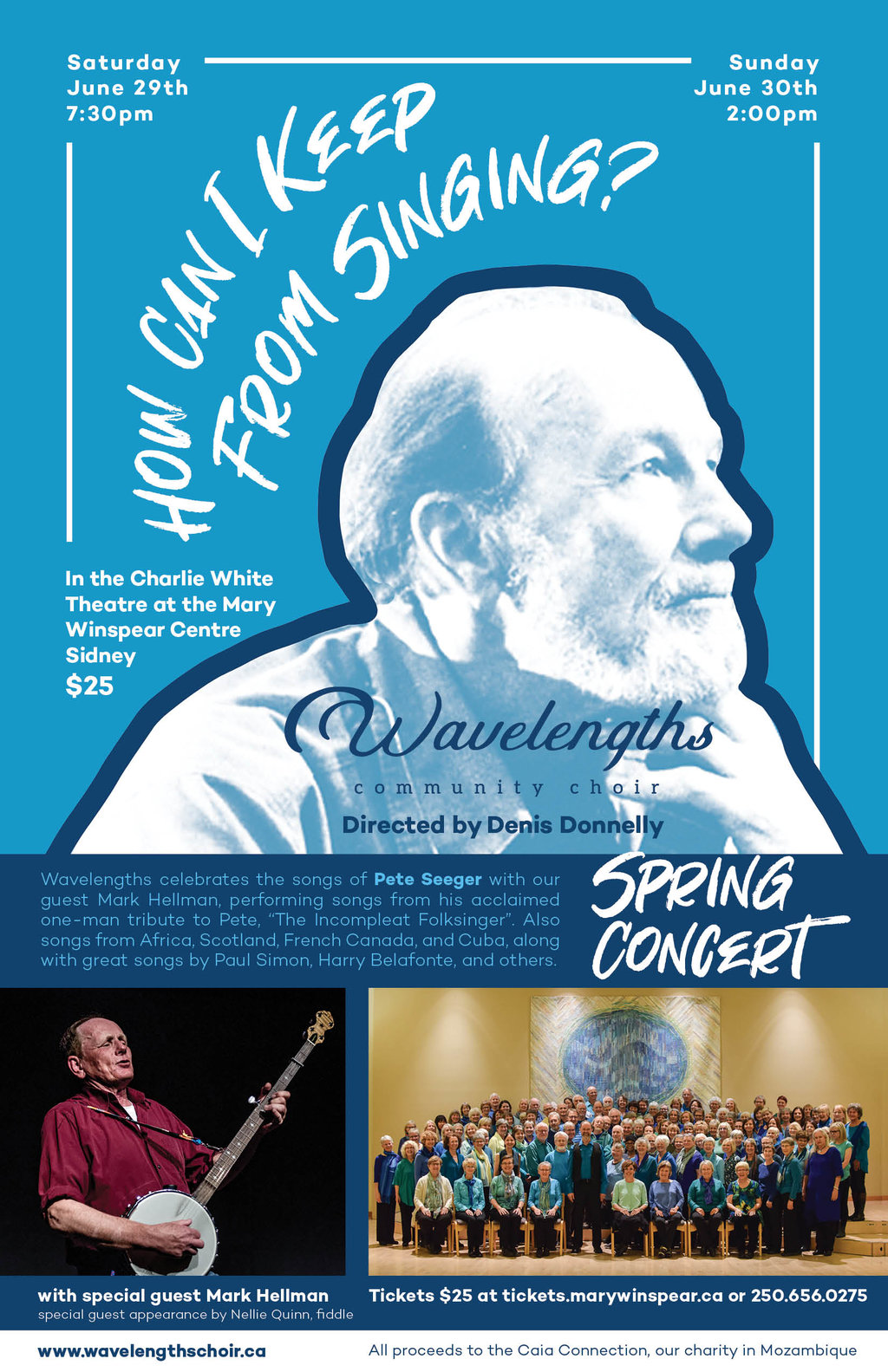 Wavelengths Community Choir, directed by Denis Donnelly, celebrates the songs of Pete Seeger with special guest Mark Hellman – famous for performing “The Incompleat Folksinger”, his acclaimed one-man tribute to Pete. Also music from Africa, Scotland, Cuba, by Paul Simon, Harry Belafonte and much more!